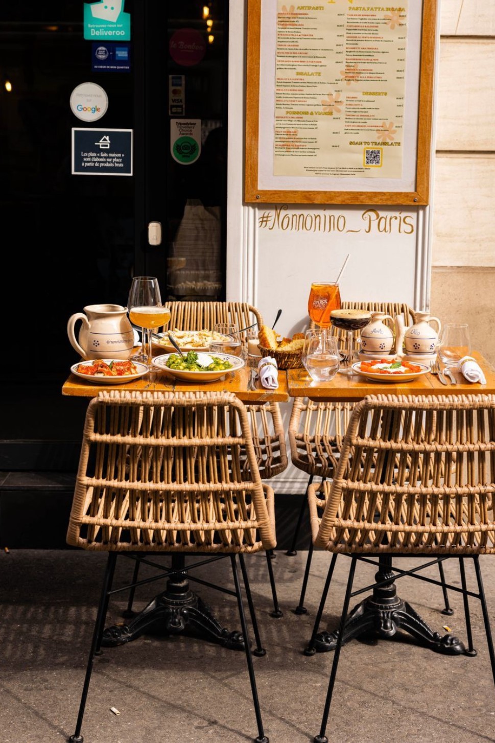 Chez Nonno Nino, on ne joue pas la carte de « l’Italie Instagram ». Pas de Vespa rouge en plastique ni de fausse vigne suspendue au plafond. Ici, les murs sont tapissés de photos de famille, de journaux jaunis gardés par les grands-parents, et les tables accueillent des plats qui sentent bon le sud de l’Italie… parce qu’ils en viennent.