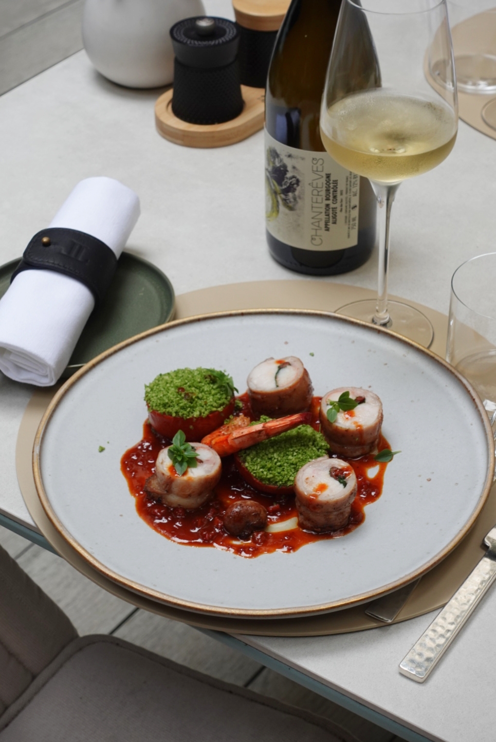 En octobre, le Chef emmène ses hôtes en Occitanie. Une assiette audacieuse et délicate : Râble de lapin, gambas et basilic & tomates à la provençale. Une danse subtile entre terre et mer, où chaque bouchée raconte une histoire de saison, de soleil et de savoir-faire. C’est coloré, c’est raffiné, et ça fait voyager le palais sans quitter le cœur de Paris.